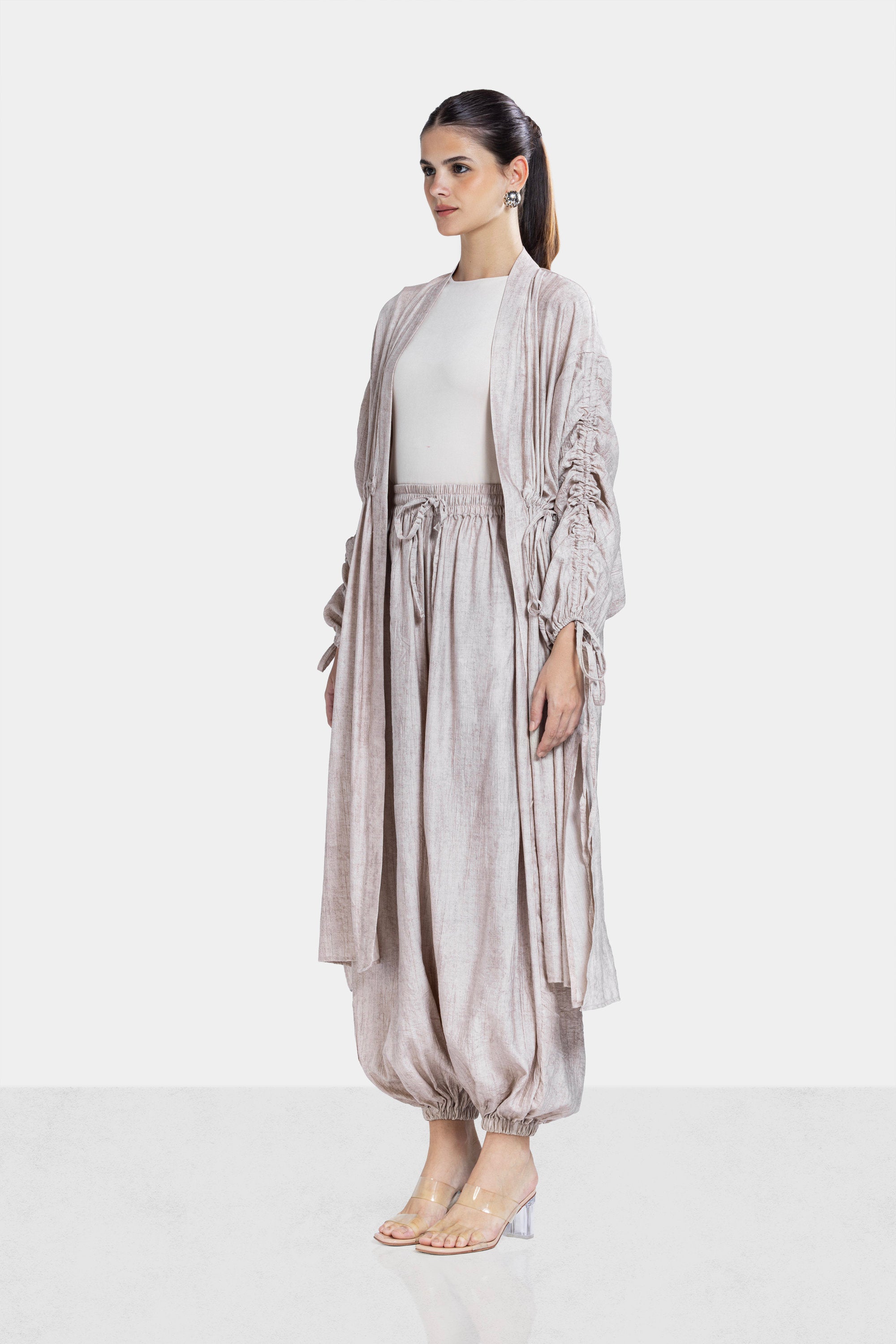A modern relaxed piece designed with soft crinkled texture and voluminous structure. The balloon silhouette creates a distinctive look while maintaining effortless comfort.