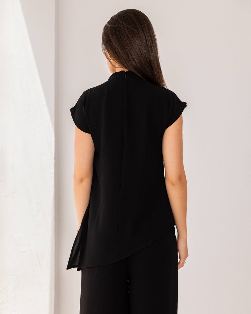 HIGH LOW DRAPPED TOP-BLACK - is backordered and will ship as soon as it is back in stock.