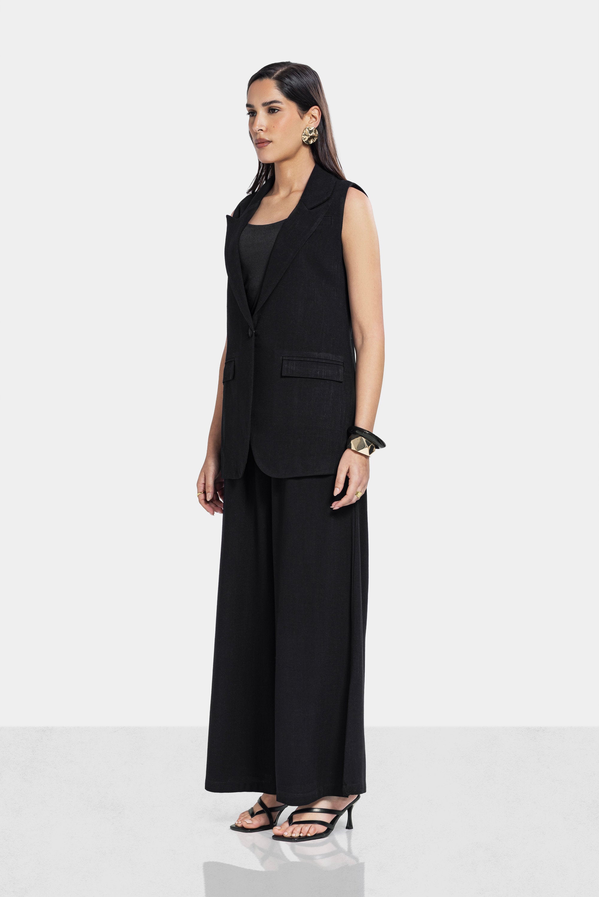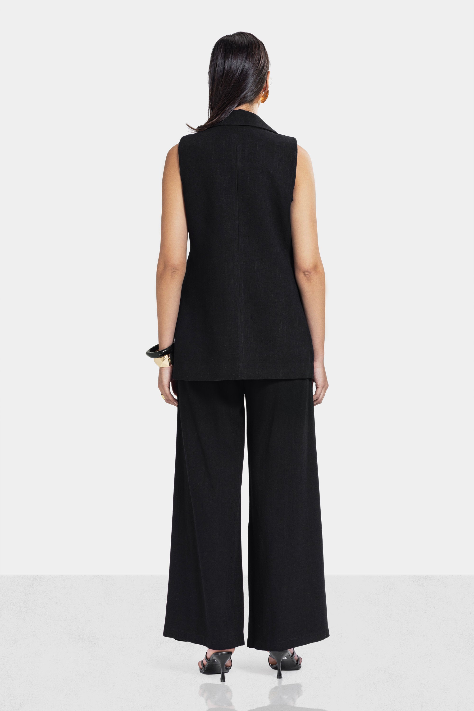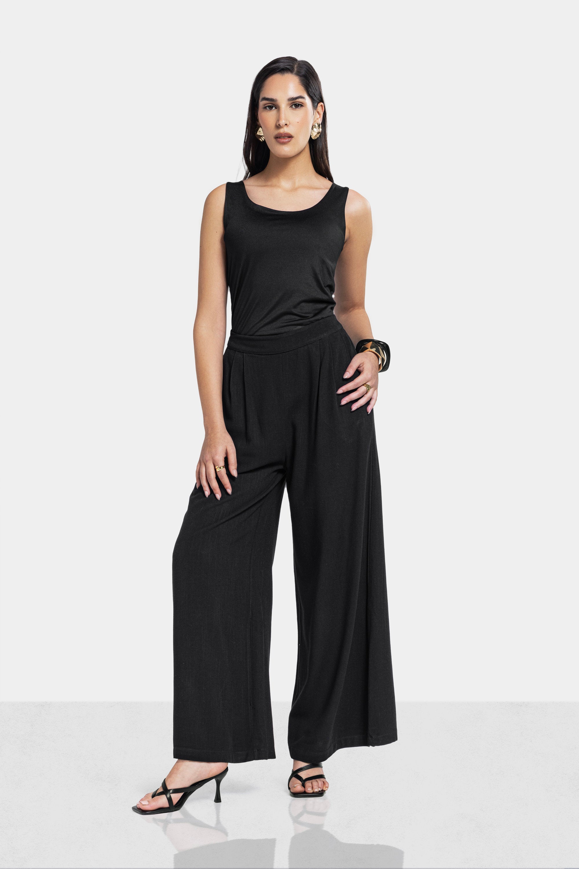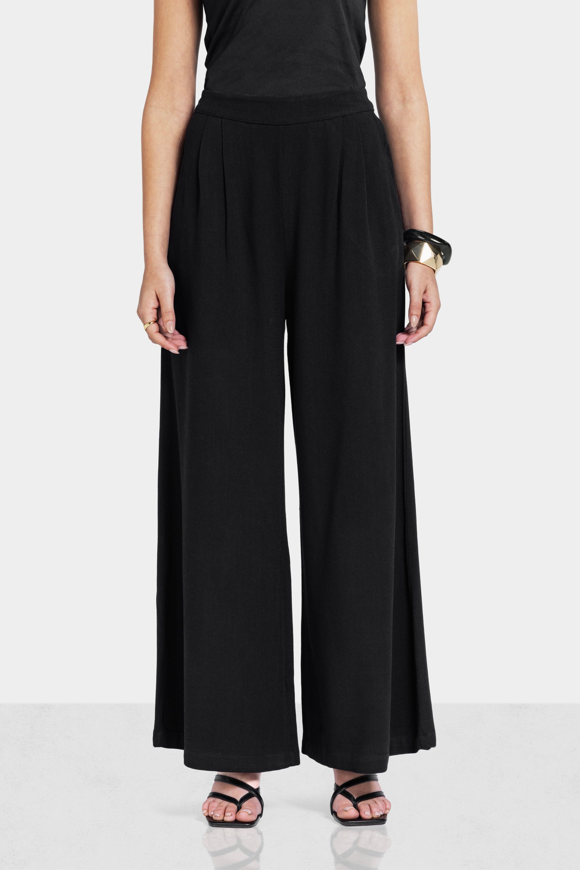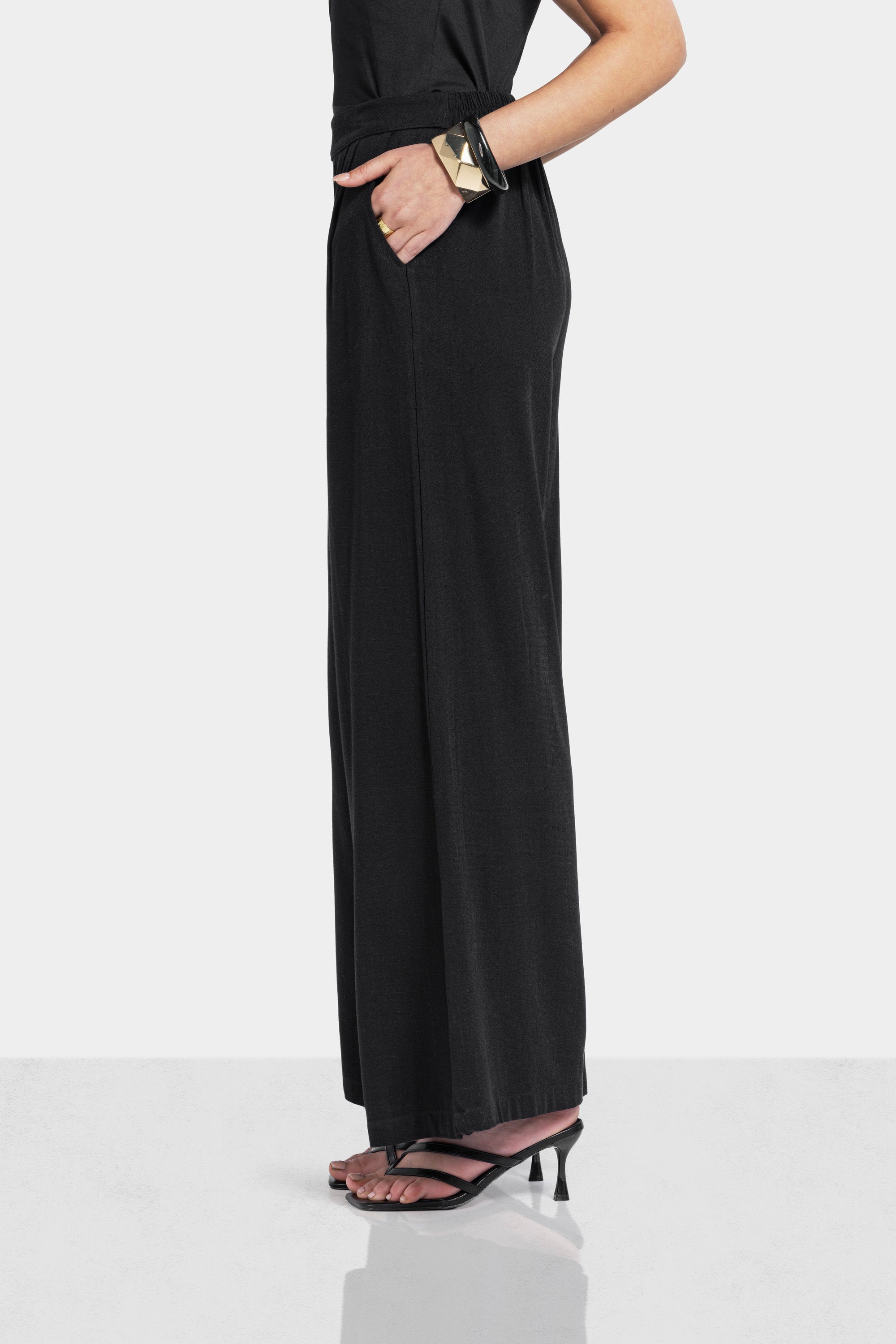 WIDE LEG LINEN PANTS -Black