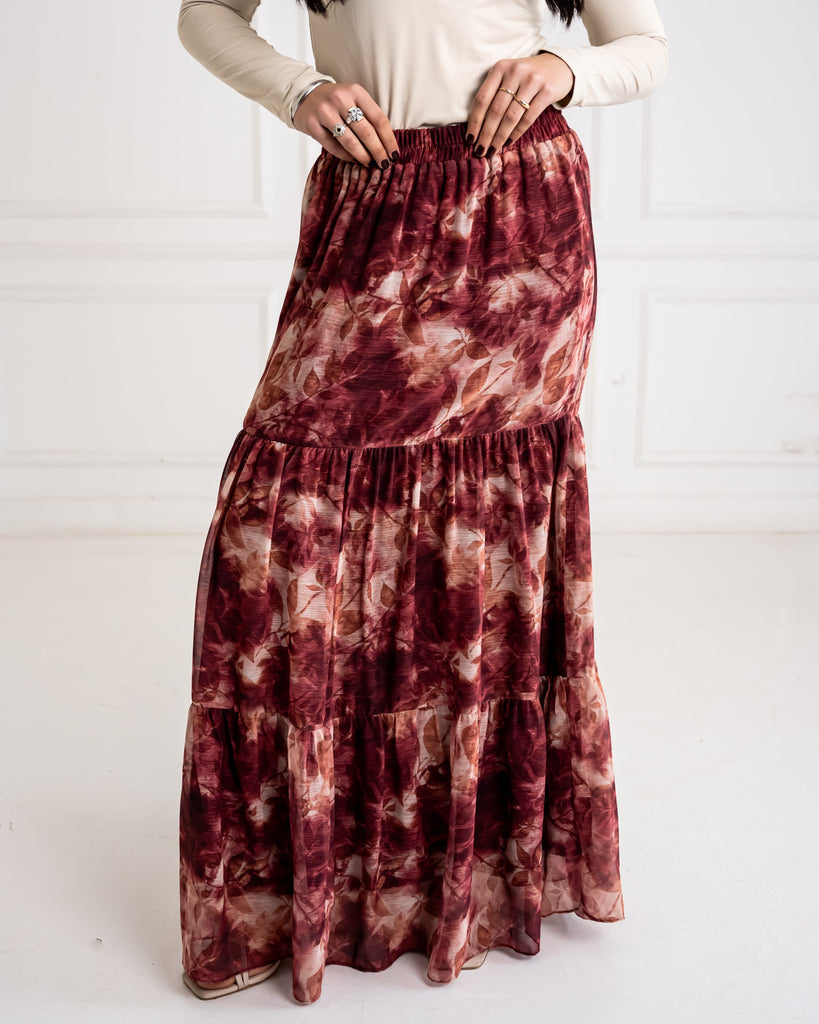 Expertly crafted with delicate ruffles, this maroon chiffon skirt is a must-have for any fashionista's wardrobe. The lightweight material provides comfort while the ruffle design adds a touch of elegance. Perfect for a night out or a special occasion, this skirt is a versatile and stylish addition to any outfit.