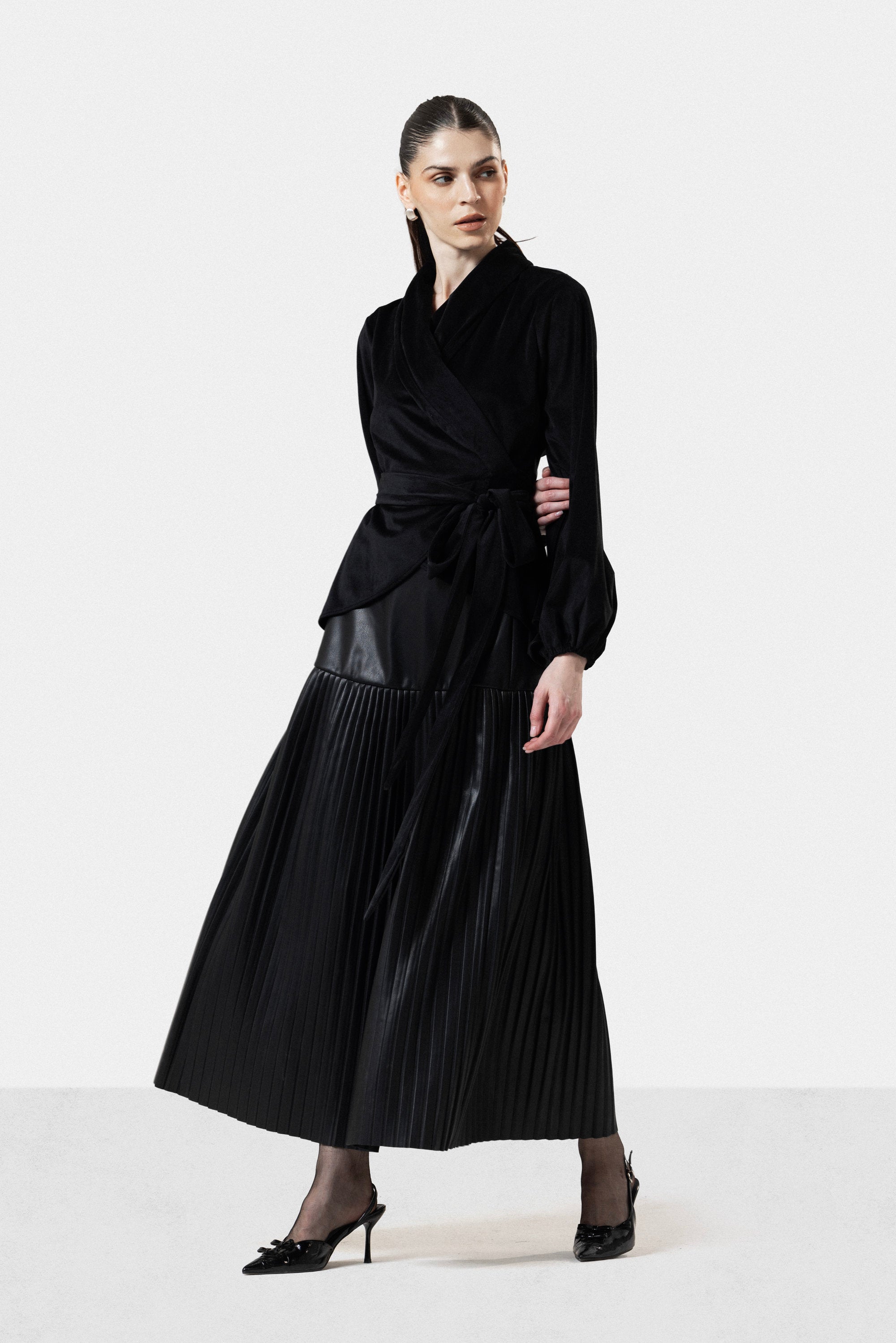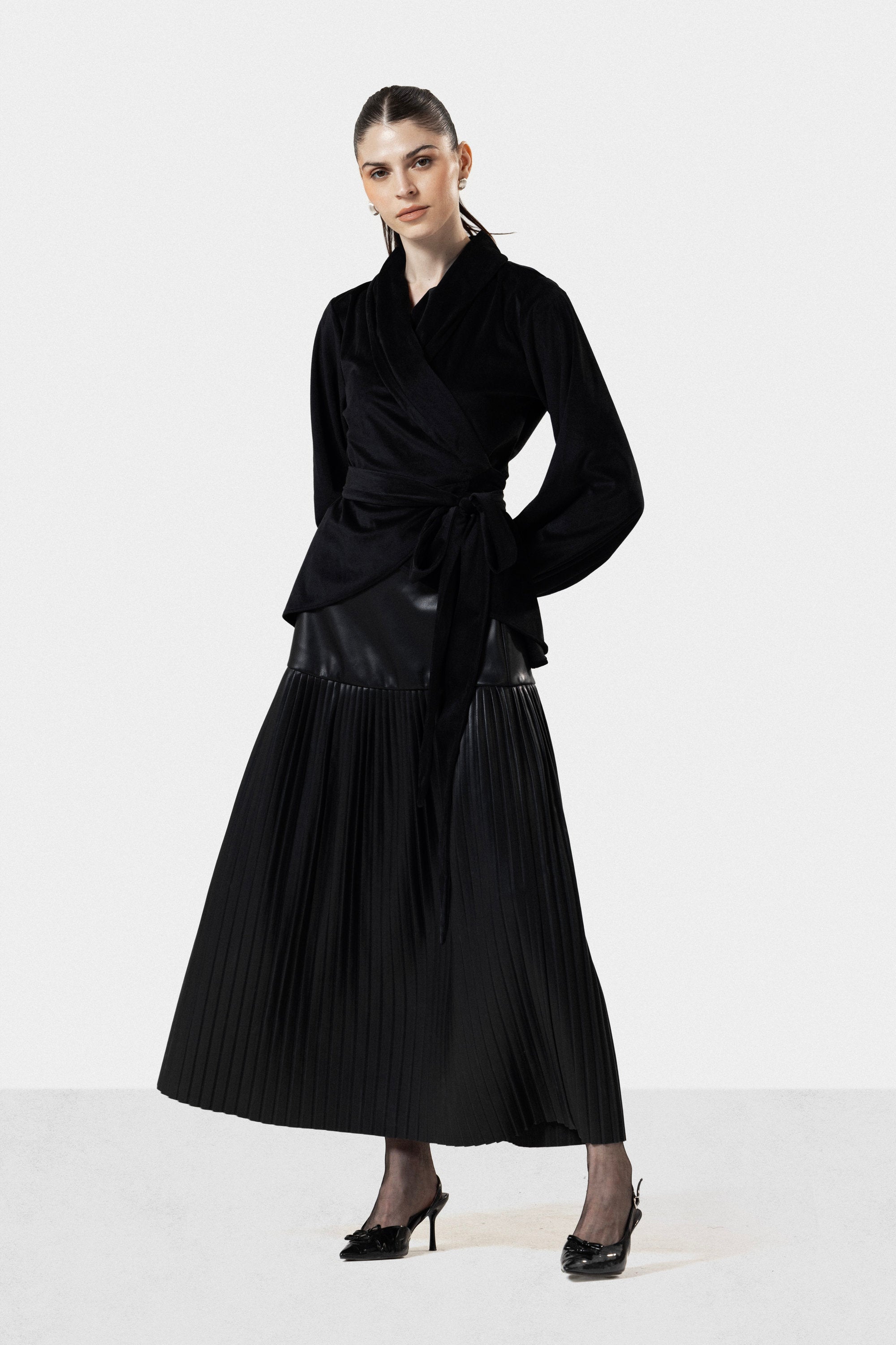 Discover our latest addition: a meticulously crafted pleated leather skirt in Black. Constructed from premium pleated leather, this piece showcases exceptional attention to detail with its precisely folded panels that create dimension and movement. The sumptuous burgundy tone delivers sophistication and versatility, pairing effortlessly with both neutral and bold pieces. The structured pleats maintain their shape while the quality leather develops a beautiful patina over time, ensuring longevity. An investment piece that transcends seasonal trends, ideal for discerning individuals seeking refined elegance and superior craftsmanship.