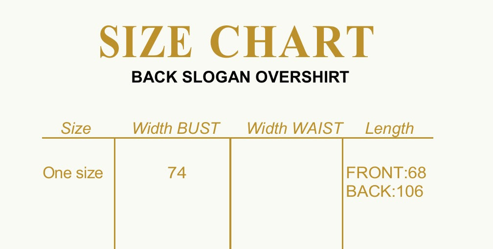 A trendy overshirt featuring a bold back slogan for a modern street-style edge. Crafted from premium fabric, it offers a relaxed fit that’s perfect for layering over tees or under jackets. Ideal for casual outings, this statement piece combines comfort and attitude effortlessly.