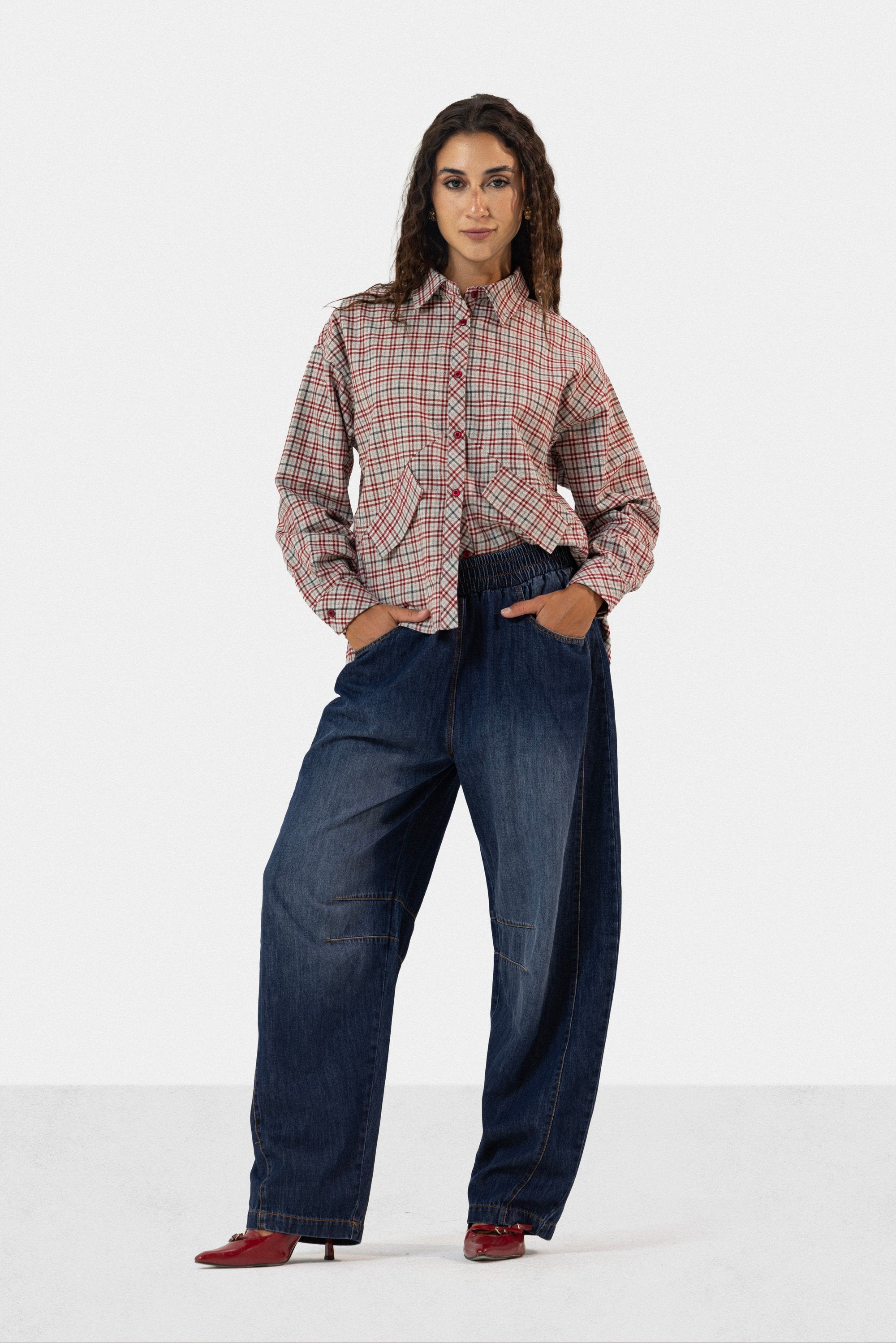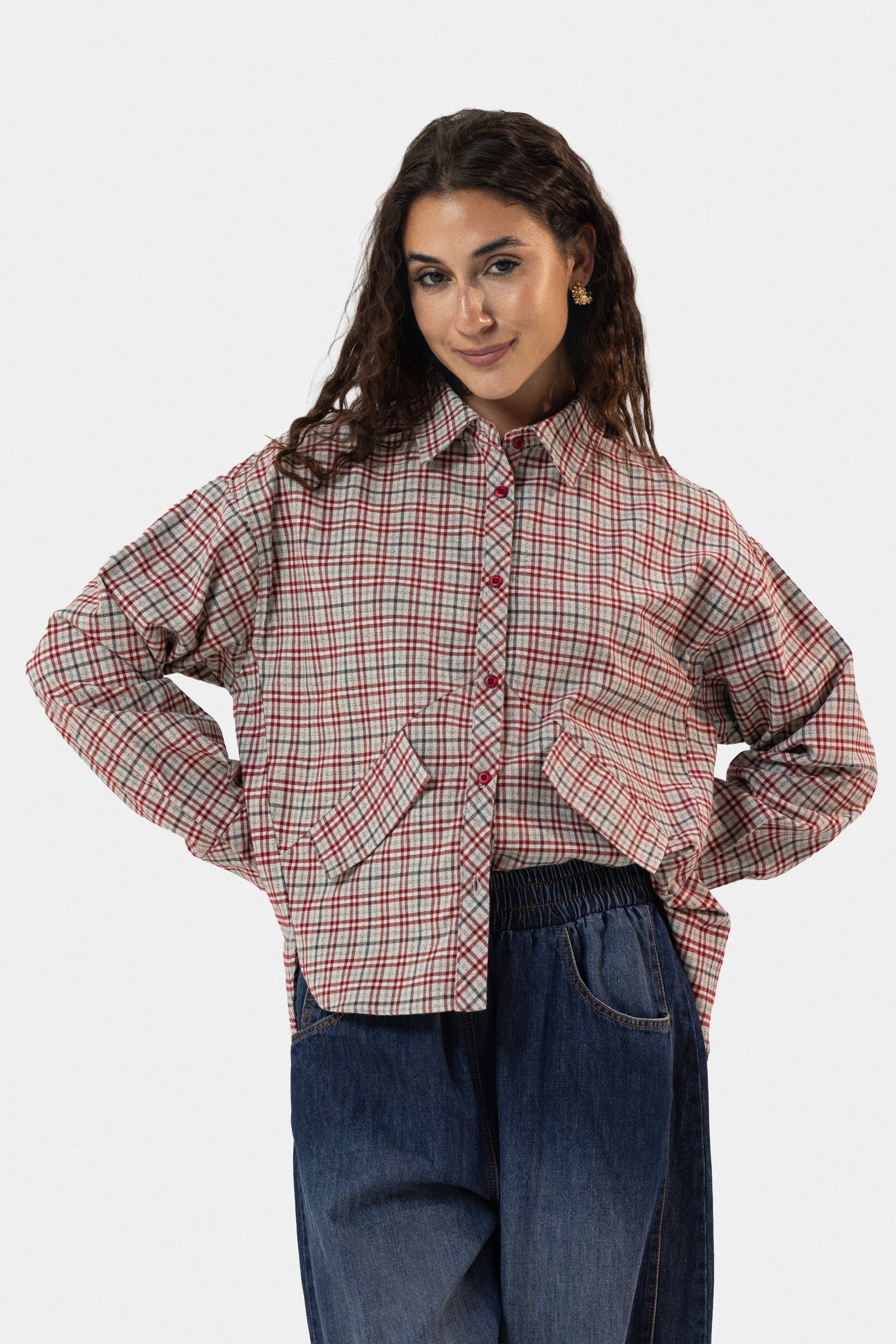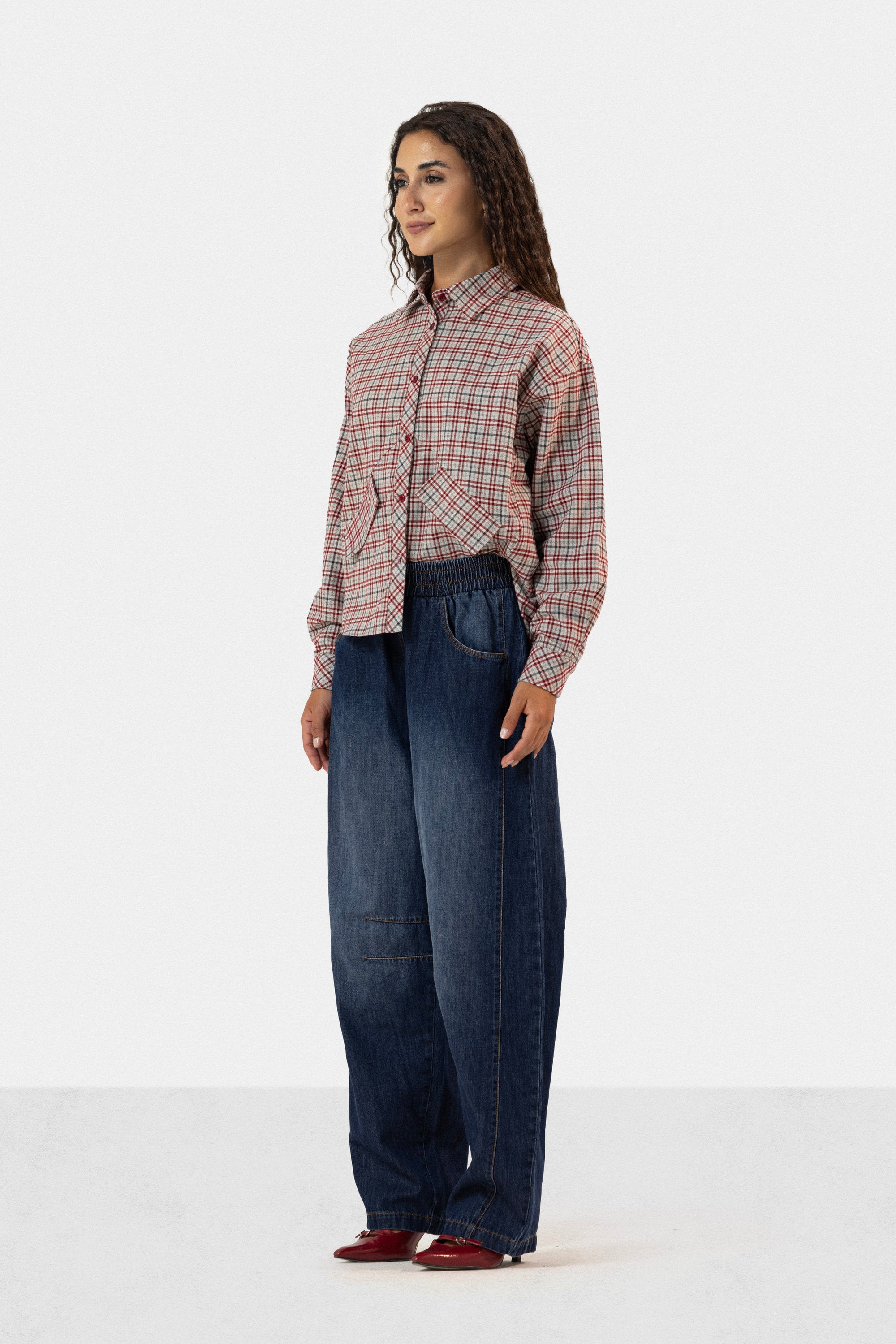 cropped plaid wool shirt