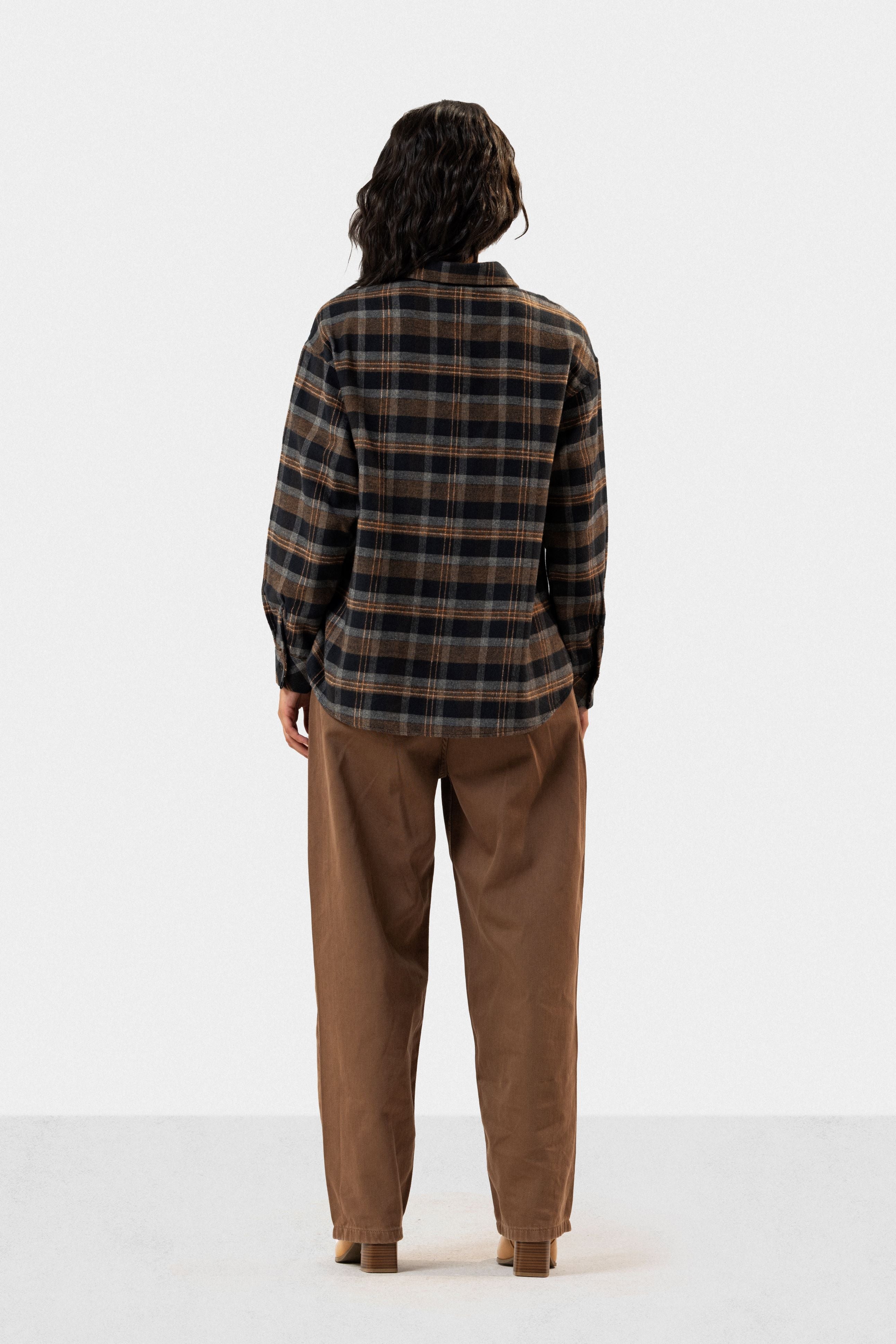 A modern twist on a classic, this cropped shirt features a timeless plaid pattern crafted from soft wool material. Designed for a relaxed yet flattering fit, it adds warmth and style to your everyday looks — perfect for pairing with high-waisted pants or skirts.