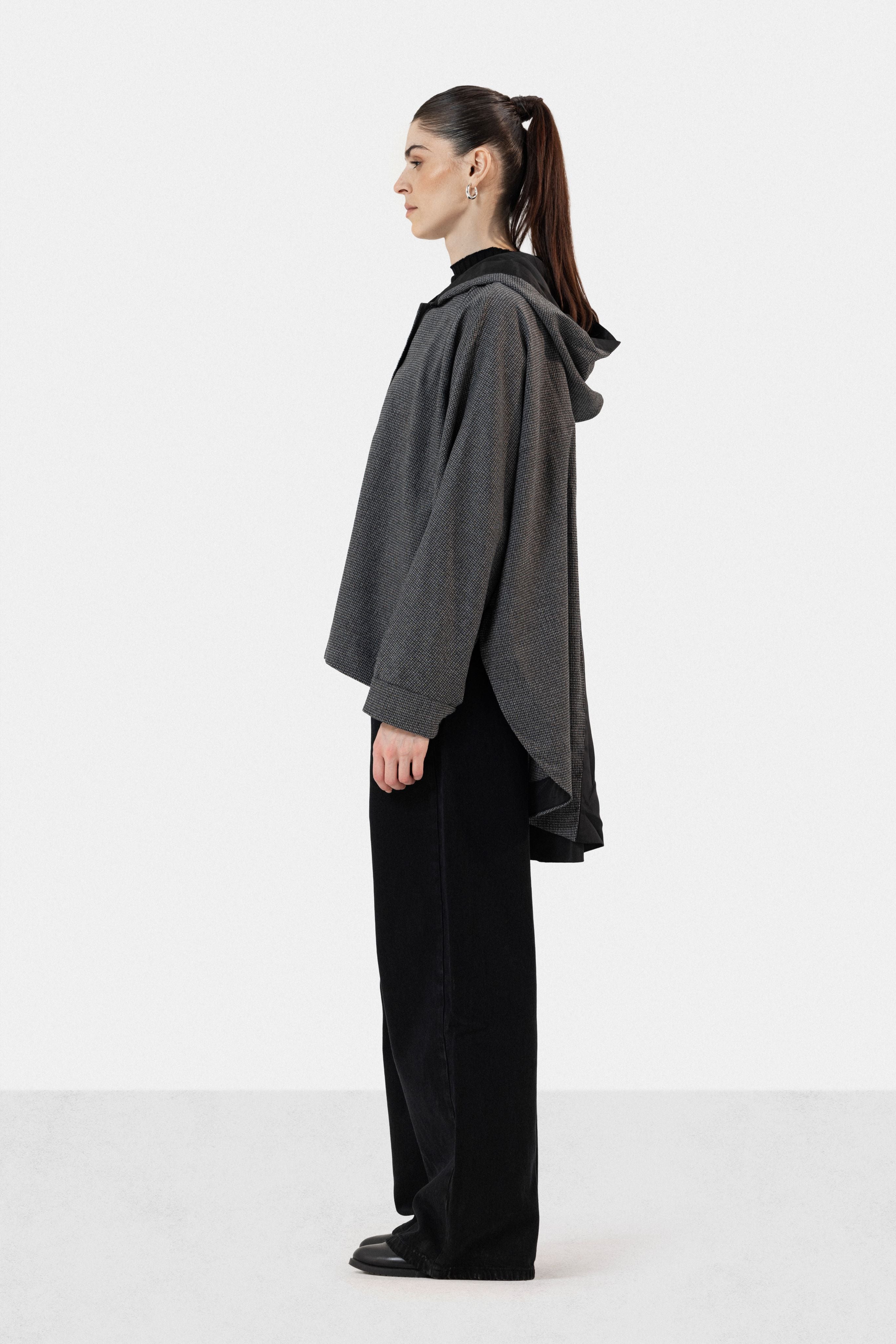 This Overshirt with Hoodie combines the warmth of mixed wool with the practicality of a waterproof finish. The fabric offers a soft, structured texture while providing protection against light rain and wind. Perfect for layering, it delivers a stylish balance of comfort, functionality, and modern design.