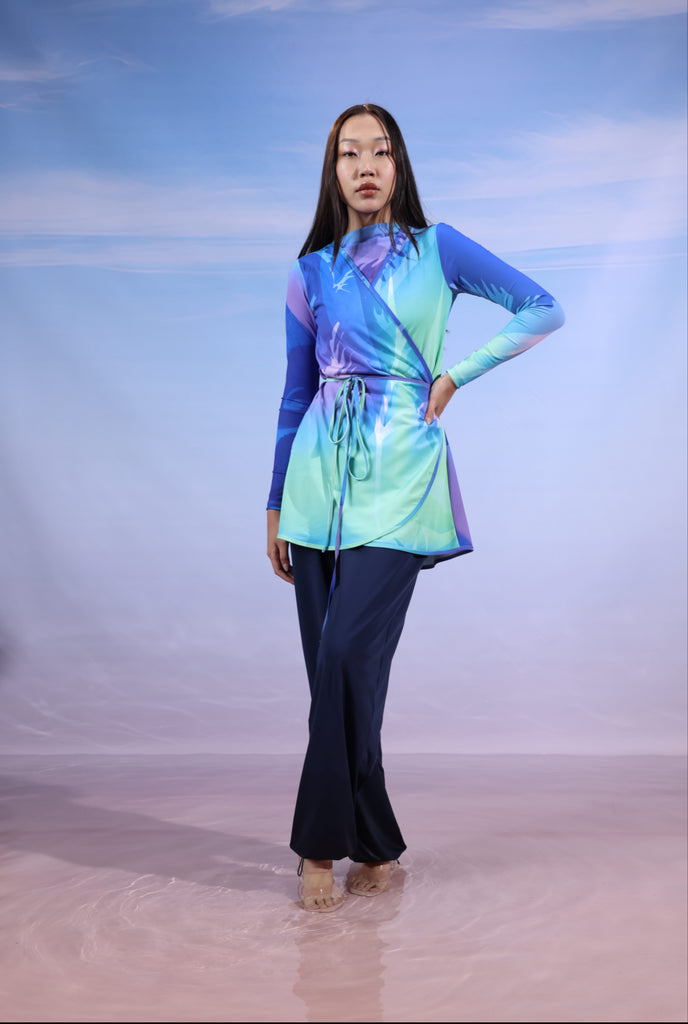 LILAC BLOSSOM SWIMSUIT TOP -BLUE ( TOP ONLY ) - is backordered and will ship as soon as it is back in stock.