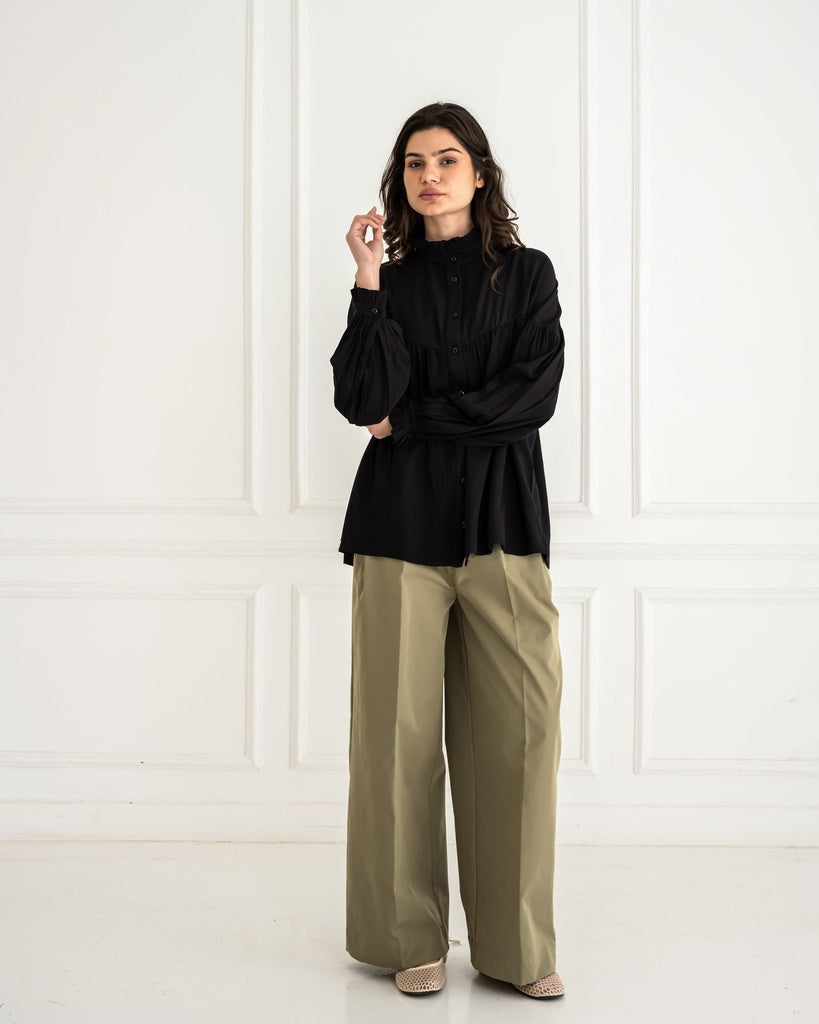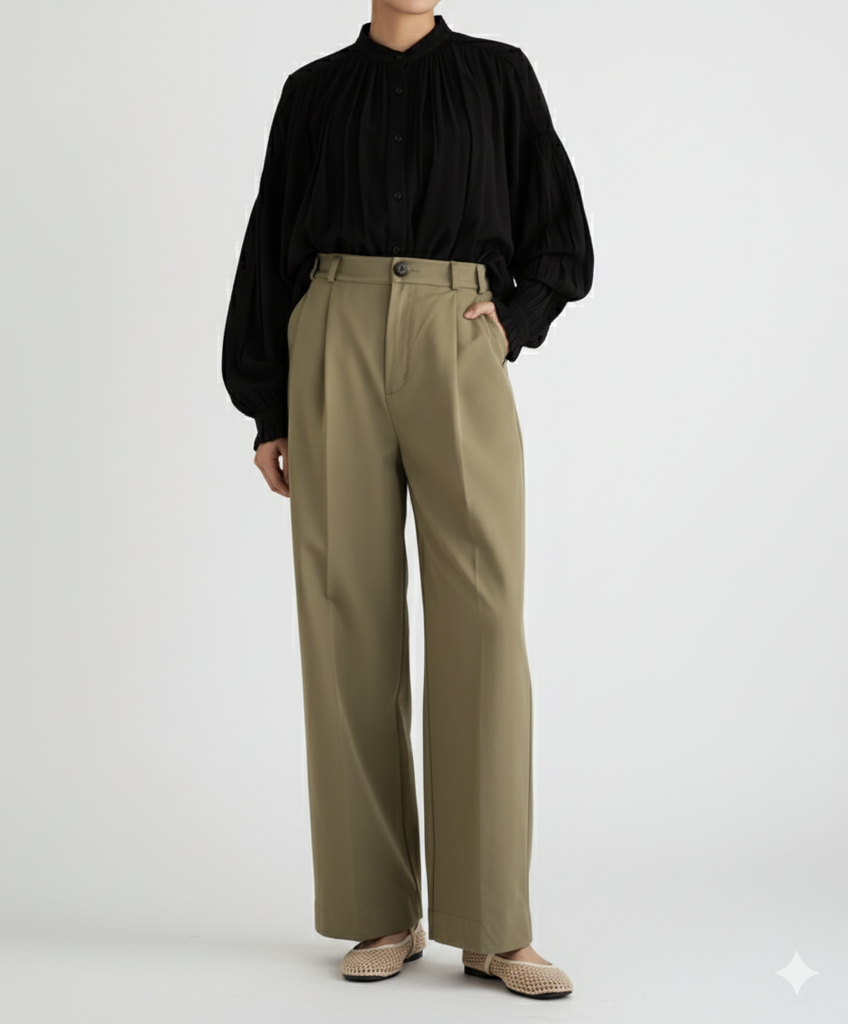 GABARDINE WIDE LEG PANTS-OLIVE - is backordered and will ship as soon as it is back in stock.
