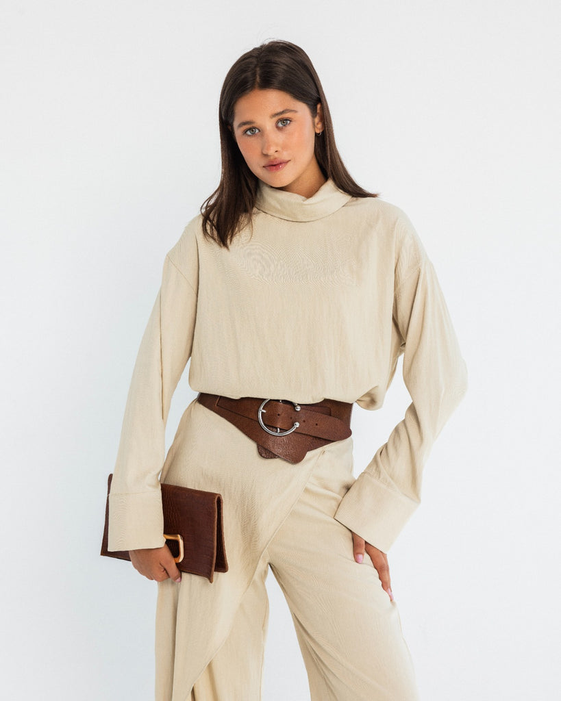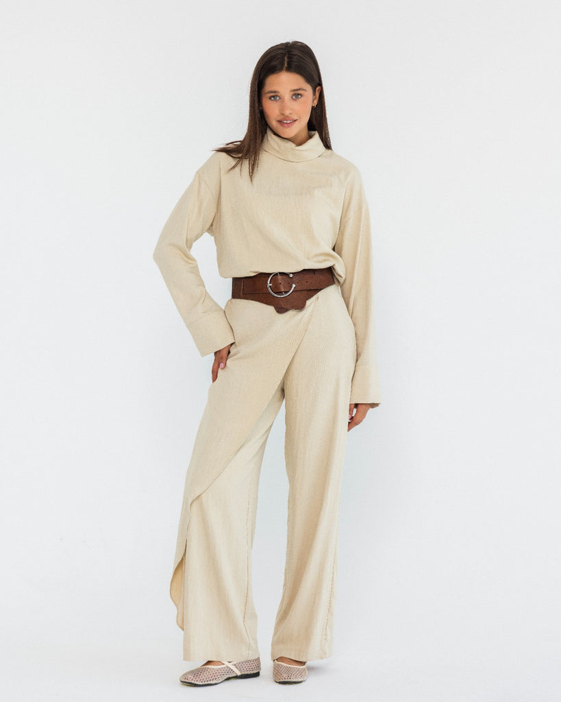 WIDE LEG PANTS WITH WRAP WAIST-BEIGE - is backordered and will ship as soon as it is back in stock.