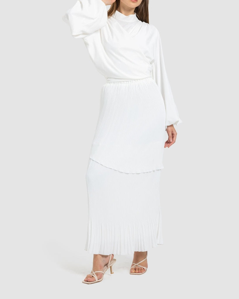 Elevate your wardrobe with our LAYERED PLISSE SKIRT-WHITE. This versatile piece features a unique layered design and a bold white color. Made from high-quality material, it guarantees comfort and style. Perfect for any occasion, whether it's a casual outing or a formal event, this skirt will elevate your look and make you stand out.