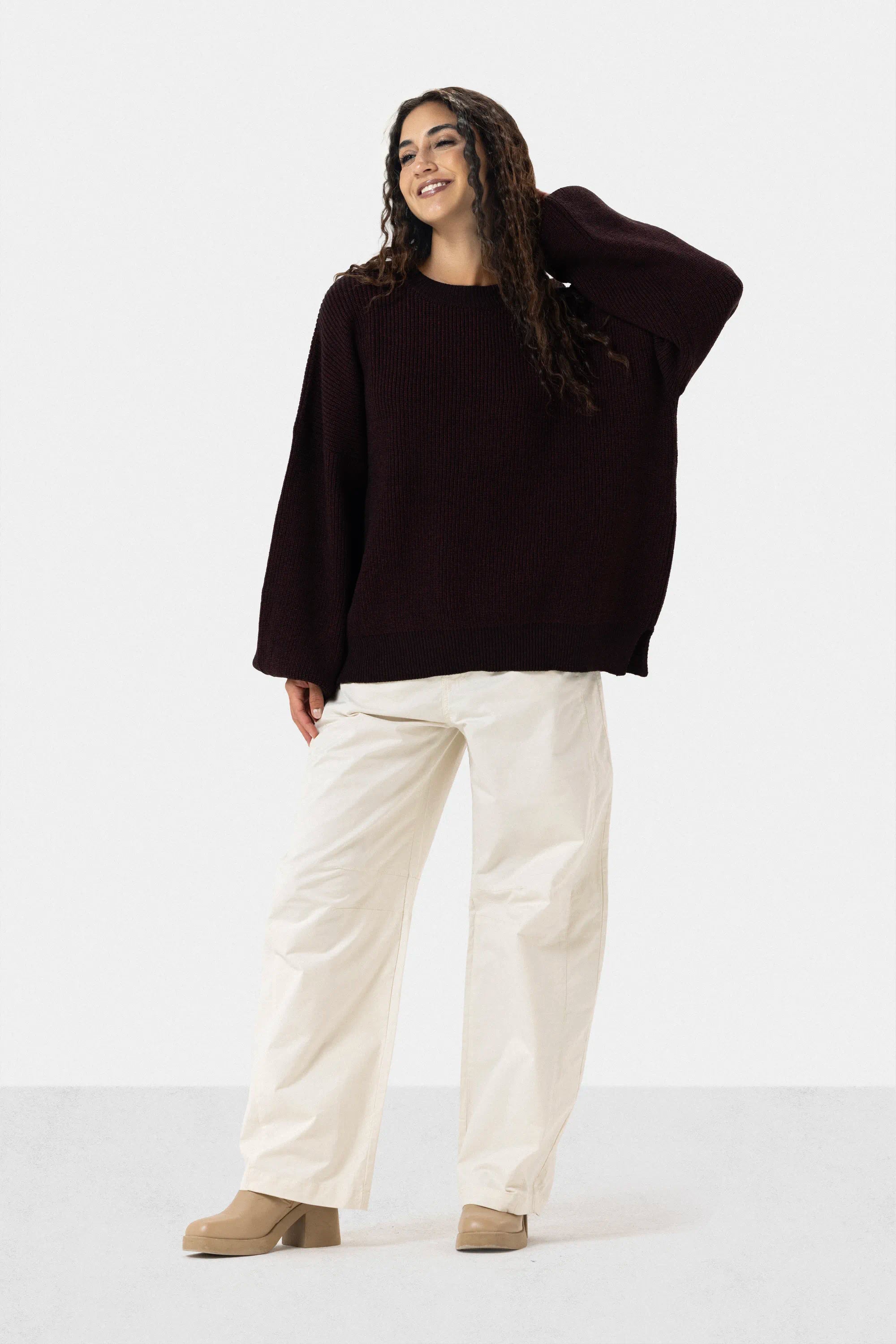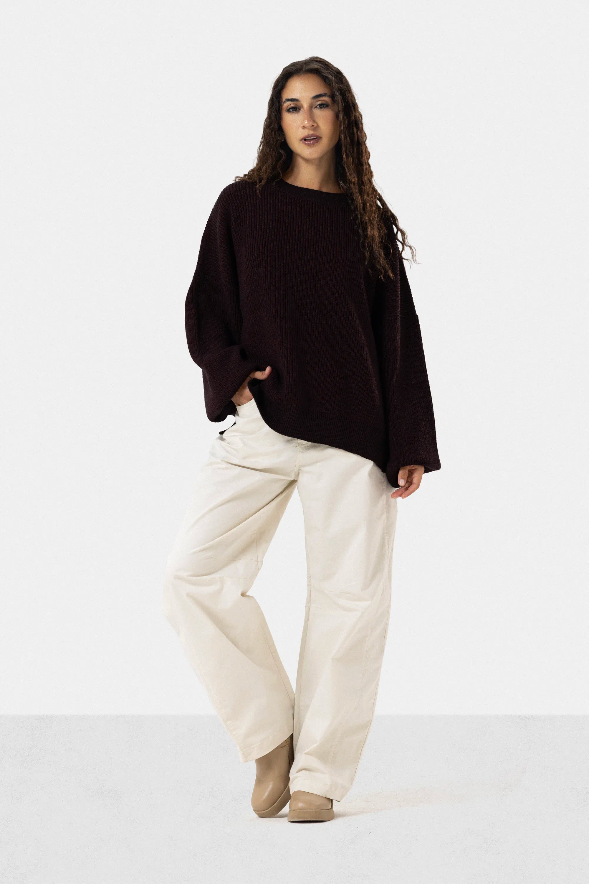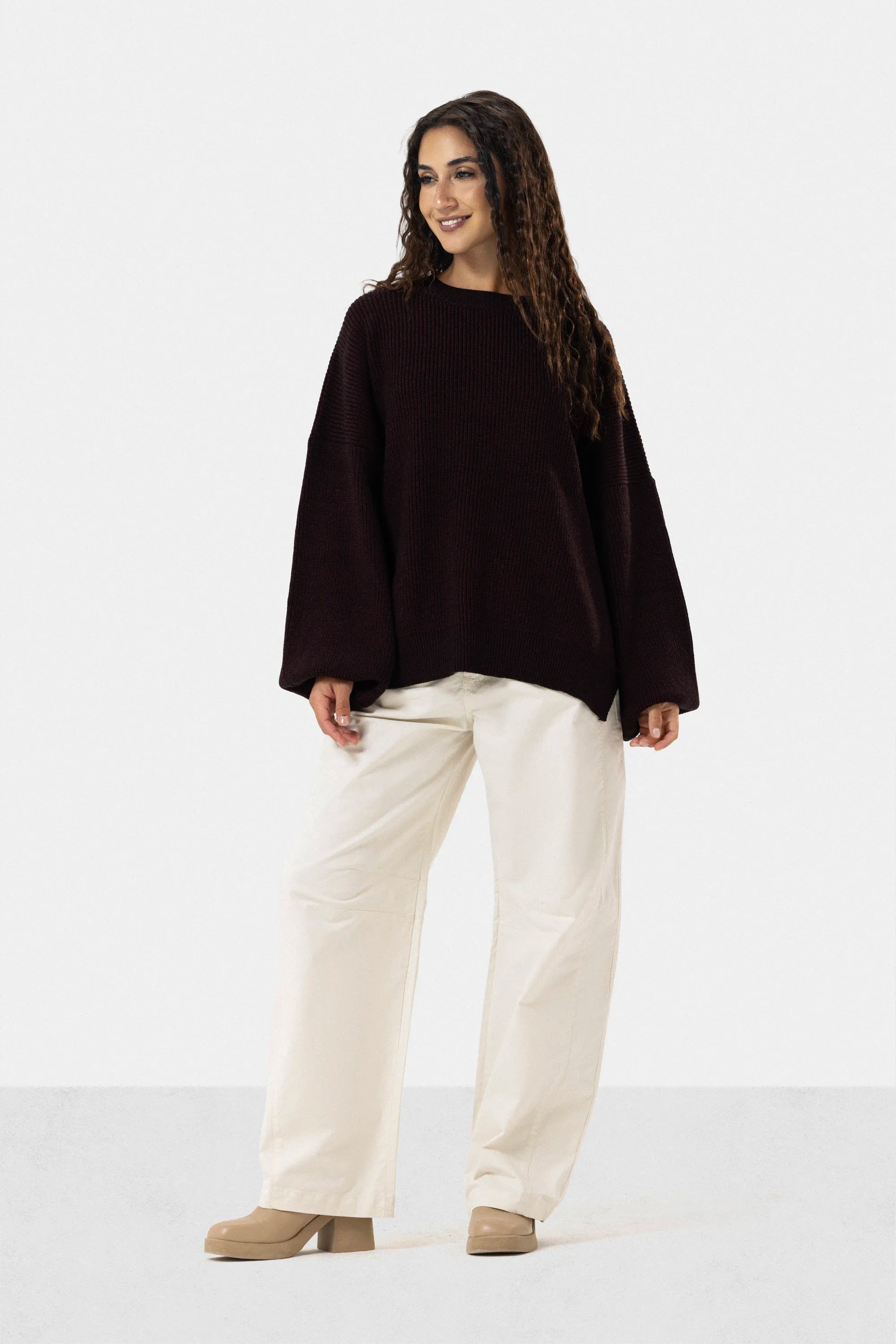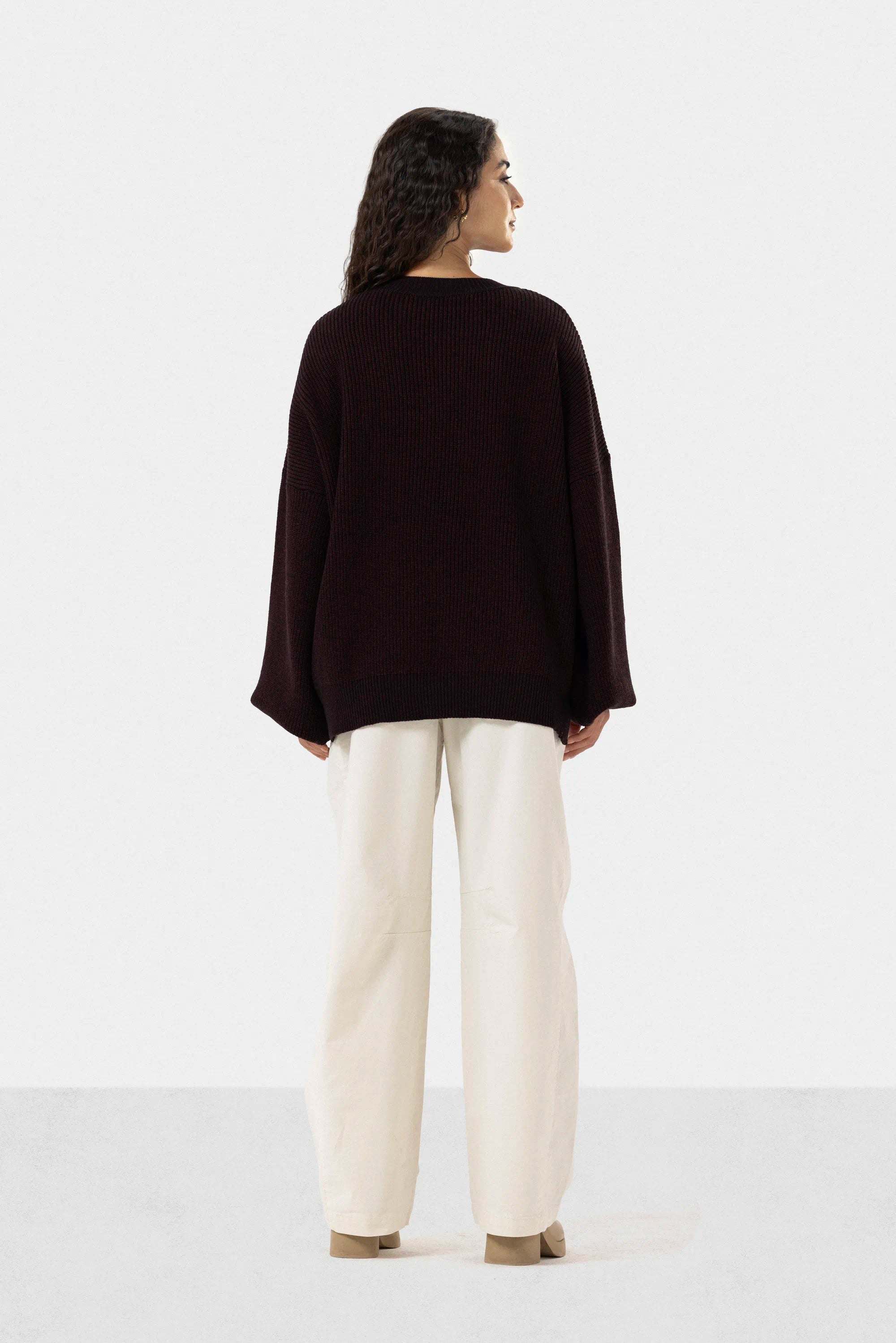 OVERSIZED PLAIN KNIT PULLOVER - DARK MAROON