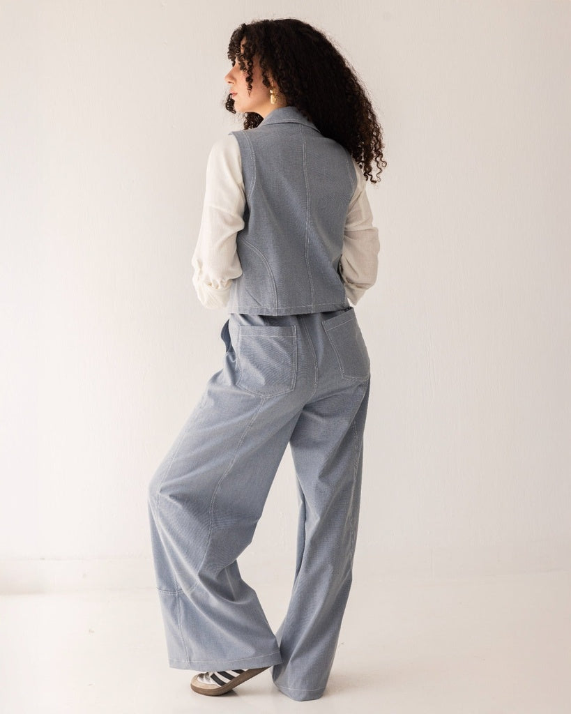 This baby blue sleeveless cropped vest is a must-have in any wardrobe. Made with high-quality fabric, it offers both comfort and style. Perfect for layering or as a statement piece, it will elevate any outfit. A versatile and timeless addition to your collection.