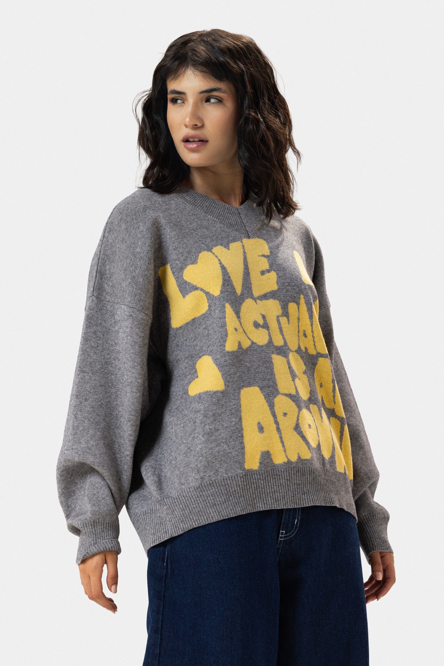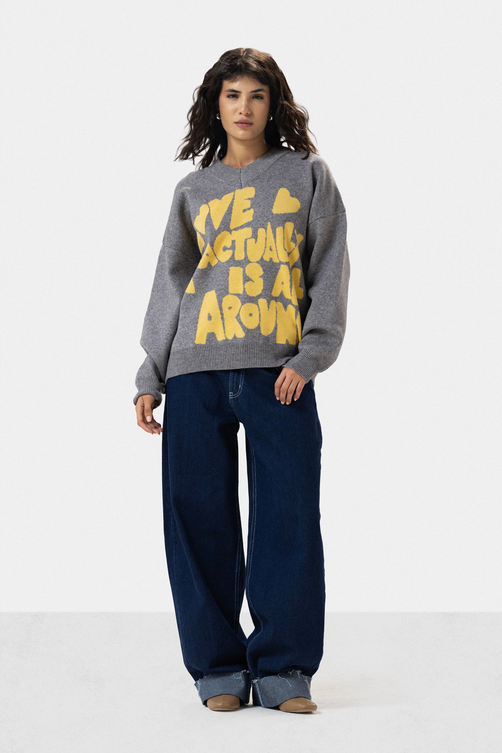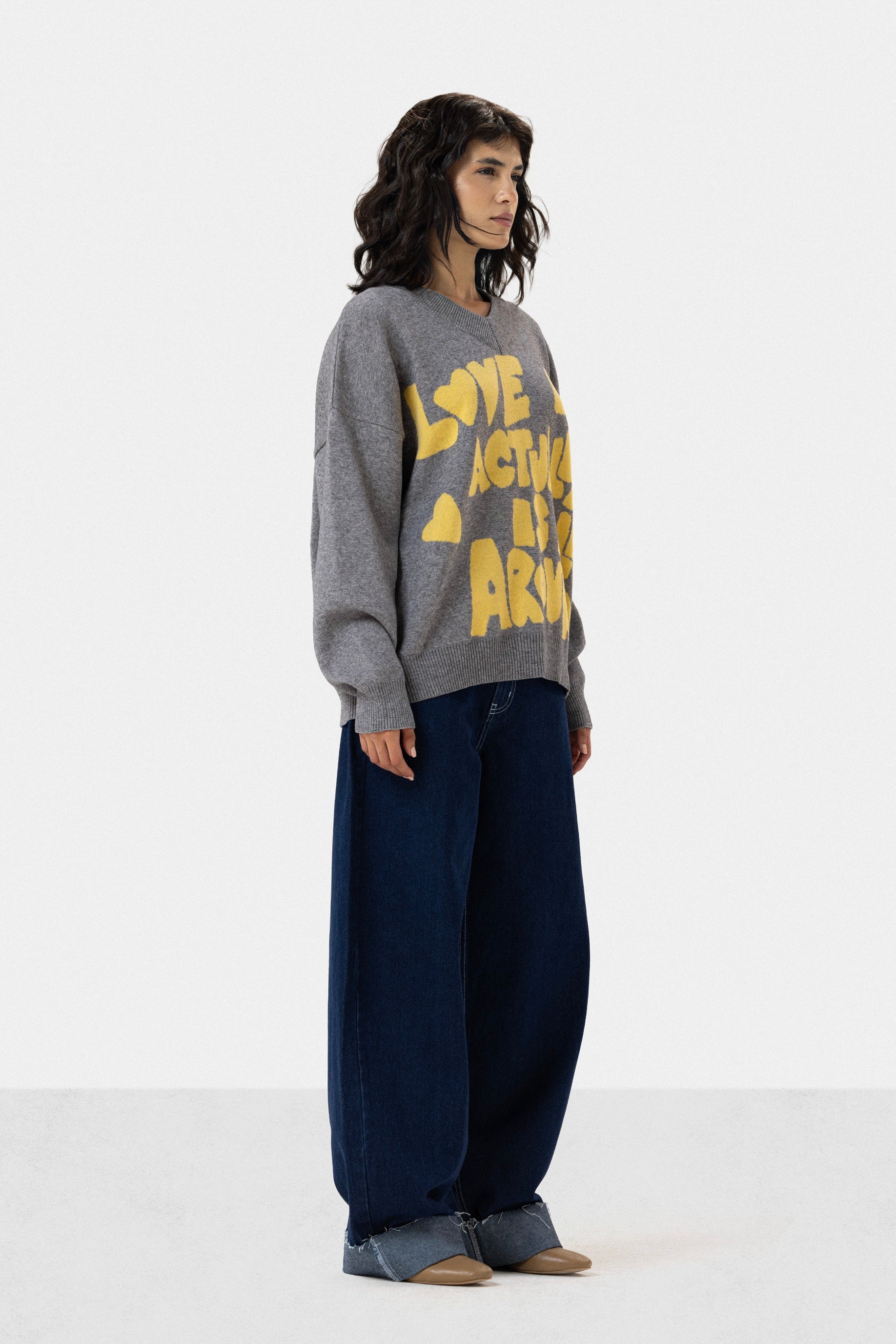 A cozy pullover featuring a vibrant yellow pattern that adds a cheerful touch to your winter wardrobe. Made from soft, comfortable fabric, it offers warmth and style in equal measure. Perfect for pairing with jeans or skirts for a relaxed yet chic look.