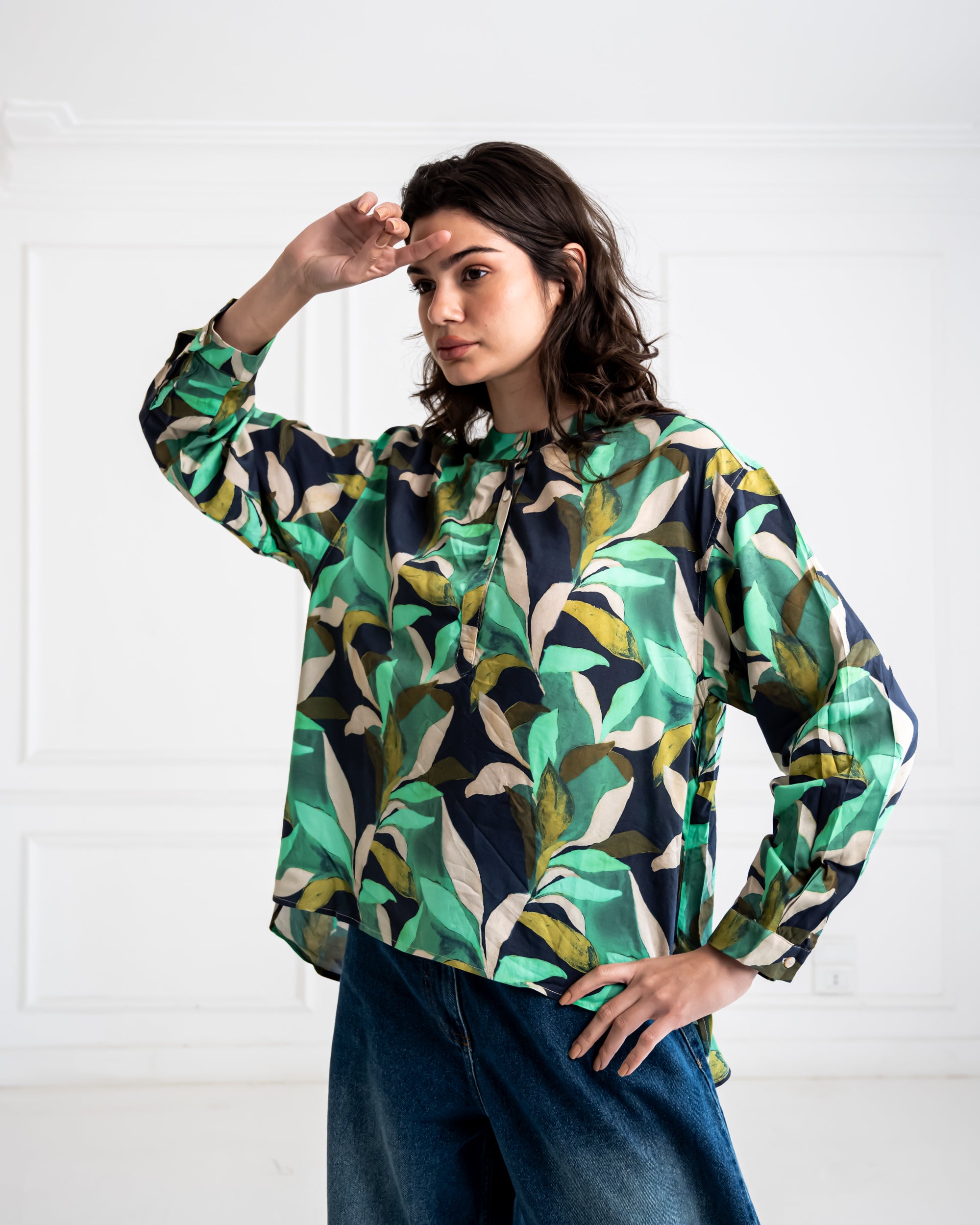 This printed blouse in green is the perfect addition to any wardrobe. Made from high-quality fabric, it offers both style and comfort. The vibrant print adds a touch of personality while the green color is versatile for any occasion. Elevate your look with this must-have piece.
