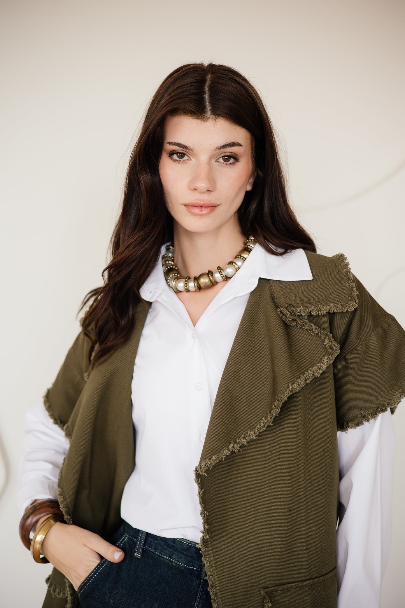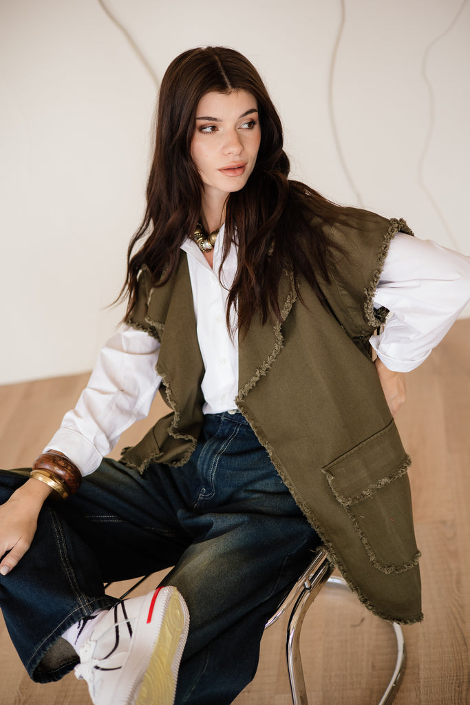 SLEEVELESS GABARDINE JACKET - is backordered and will ship as soon as it is back in stock.